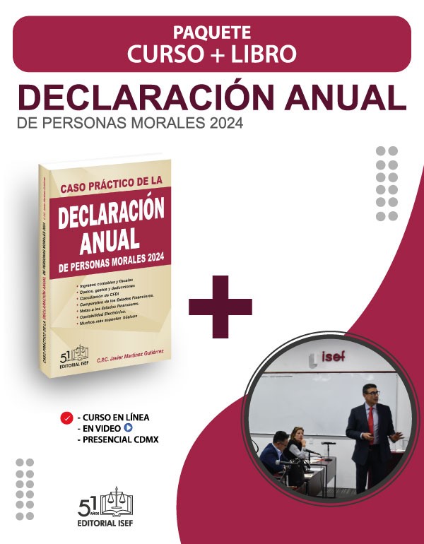 - LIBRO “Caso Práctico de la Declaración Anual de Personas Morales 2024” escrito por Javier Martínez, un libro lleno de consejos para cálculos y llenado. Abarca: ingresos contables y fiscales, costos, gastos y deducciones, conciliación del CFDI, comparativo de los Estados Financieros y mucho más.