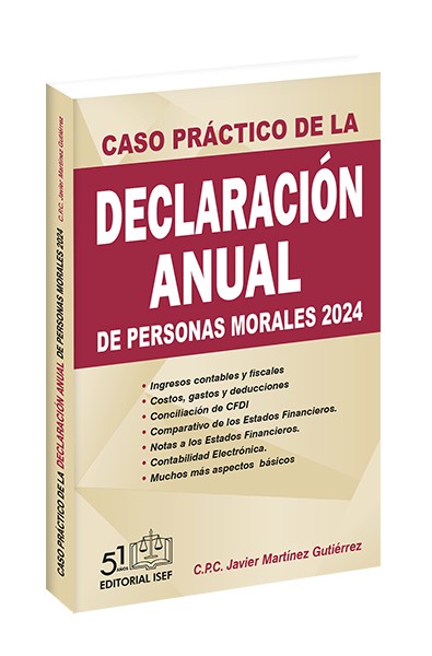 La obra “Caso Práctico de la Declaración Anual de Personas Morales 2024” del distinguido autor Javier Martínez, es un libro lleno de consejos para cálculos y llenado sobre: